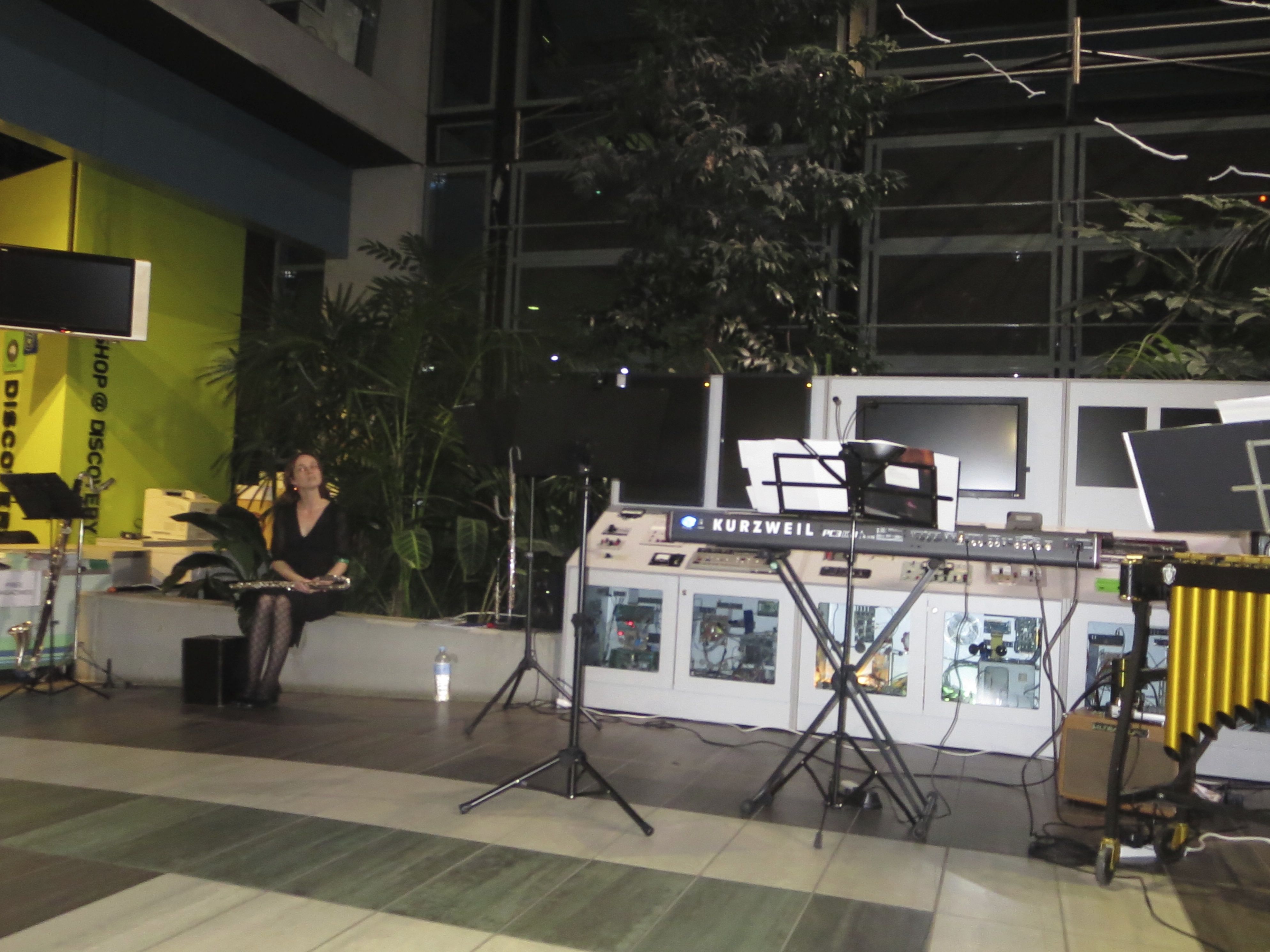 The year ended on something a little different, because, unusually, the whole concert comprised one multi-movement piece called “Southern Sky” by Estonian Urmas Sisask who was inspired by his visit to Australia in the 1990s. You can read an excellent review of the concert on the Canberra Critics Circle blog. I really can’t add anything to what they’ve said. It was cold but, luckily for us (and the musicians), the rain that fell a few kilometres away on my house missed us. The piece, arranged by Michael Sollis, shows off all members of the Ensemble (as the above-mentioned review describes). It was magical, spoilt only by the fact that the cloudy sky meant that astronomer Fred Watson could not actually point out any of the constellations represented in the pieces. I did love seeing Wyana O’Keeffe back in her percussion spot. We’ve missed her this year while she’s been away on baby duties.
