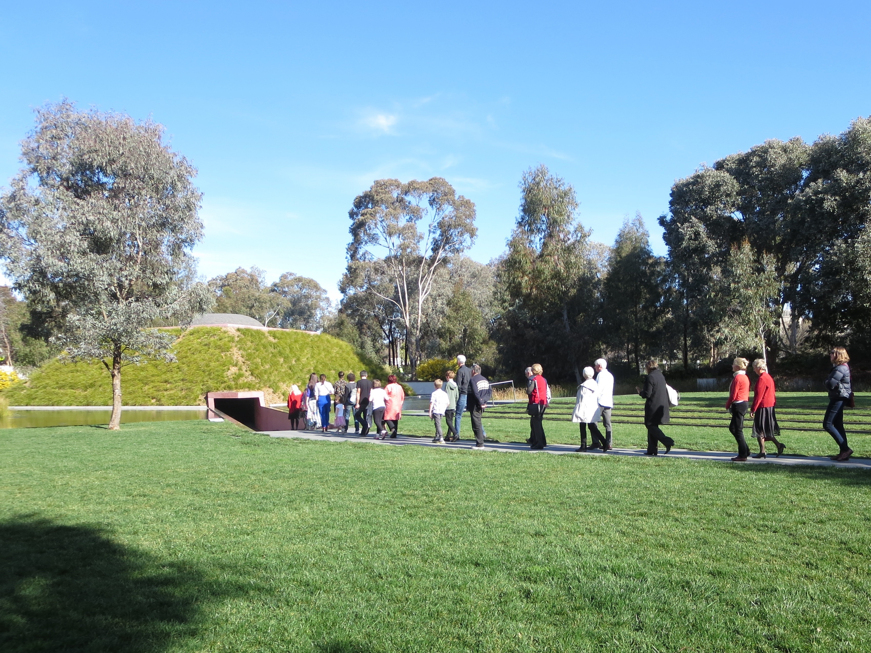 The walk occurred a little later in the concert and involved the audience following Susan Ellis (emulating the Pied Piper in voice) out of the Hall, across the lawn and into James Turrell’s “Skyspace”. Once there, we filed inside the cone in small groups and found three Griffyns sitting on the bench humming/chanting into the space. It was peaceful, harmonious – and reminded Mr Gums and me of some moving “art space” experiences in Japan, particularly from the Setouchi International Art Festival.