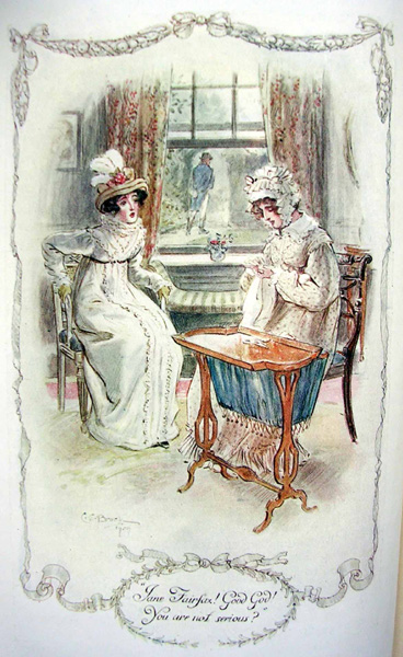 “Jane Fairfax. Good God! You are not serious!” (Illus, by CE Brock)