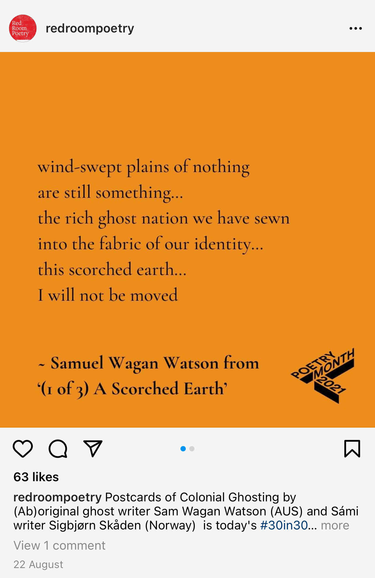 Meanwhile, here are some thoughts about poetry posted on Instagram by the month’s organisers, RedRoom Poetry