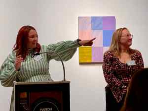 Tonight I attended the presentation of the ACT Notable Book Awards which are made by Marion (the ACT Writers Centre). It was a well-organised event, but had a wonderfully natural and friendly feel to it at the same time, appeals to me. I’ll take natural over glitz every time. The venue was the Canberra Contemporary Art Space, where the featured exhibition was Bodies without Organs, a group show, says the website, by queer and non-binary artists, exploring “how contemporary artists transgress and subvert our understanding of materiality and form”. There was a little time to view the art before the formalities started, but I’m afraid I used that time to catch up with people.
